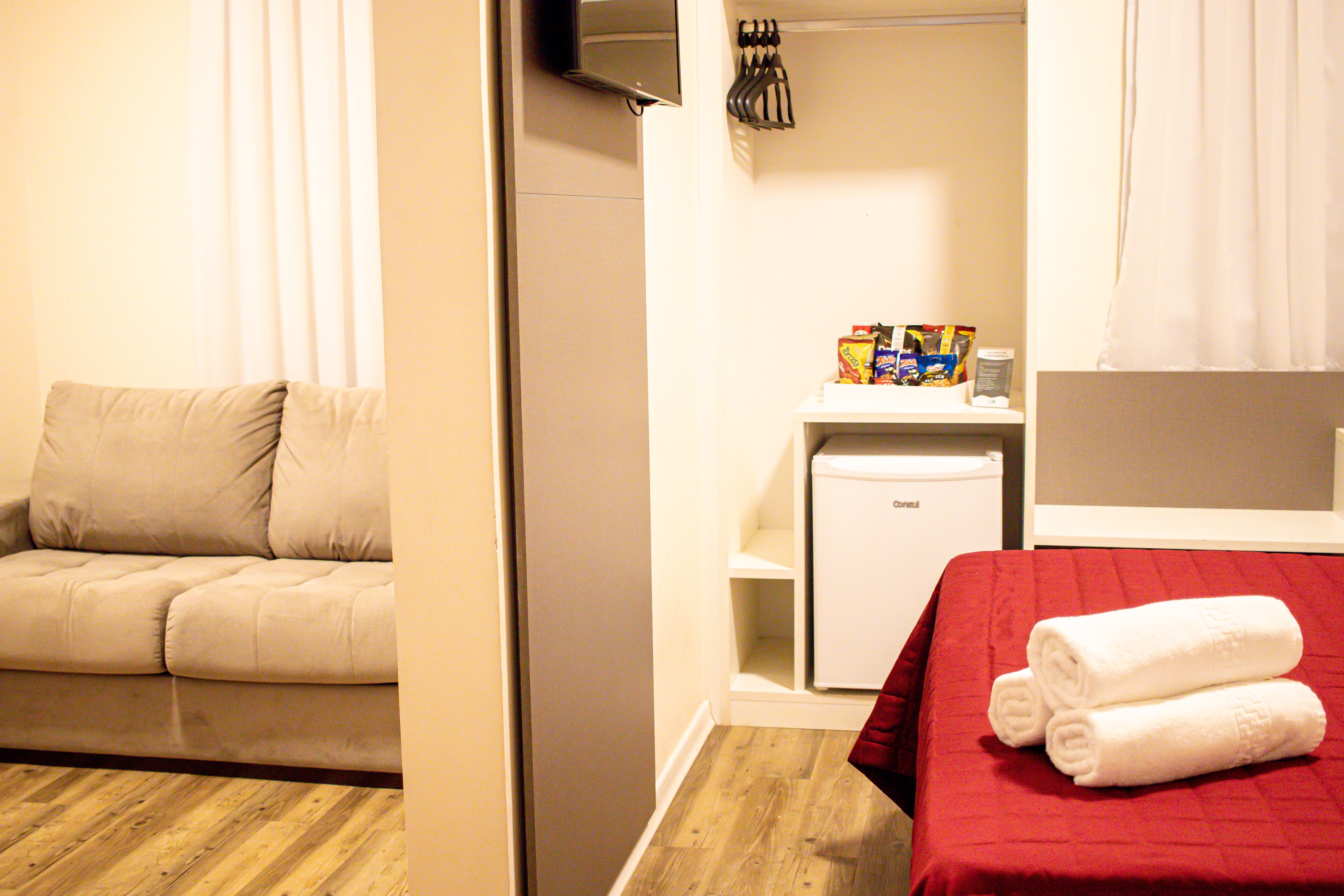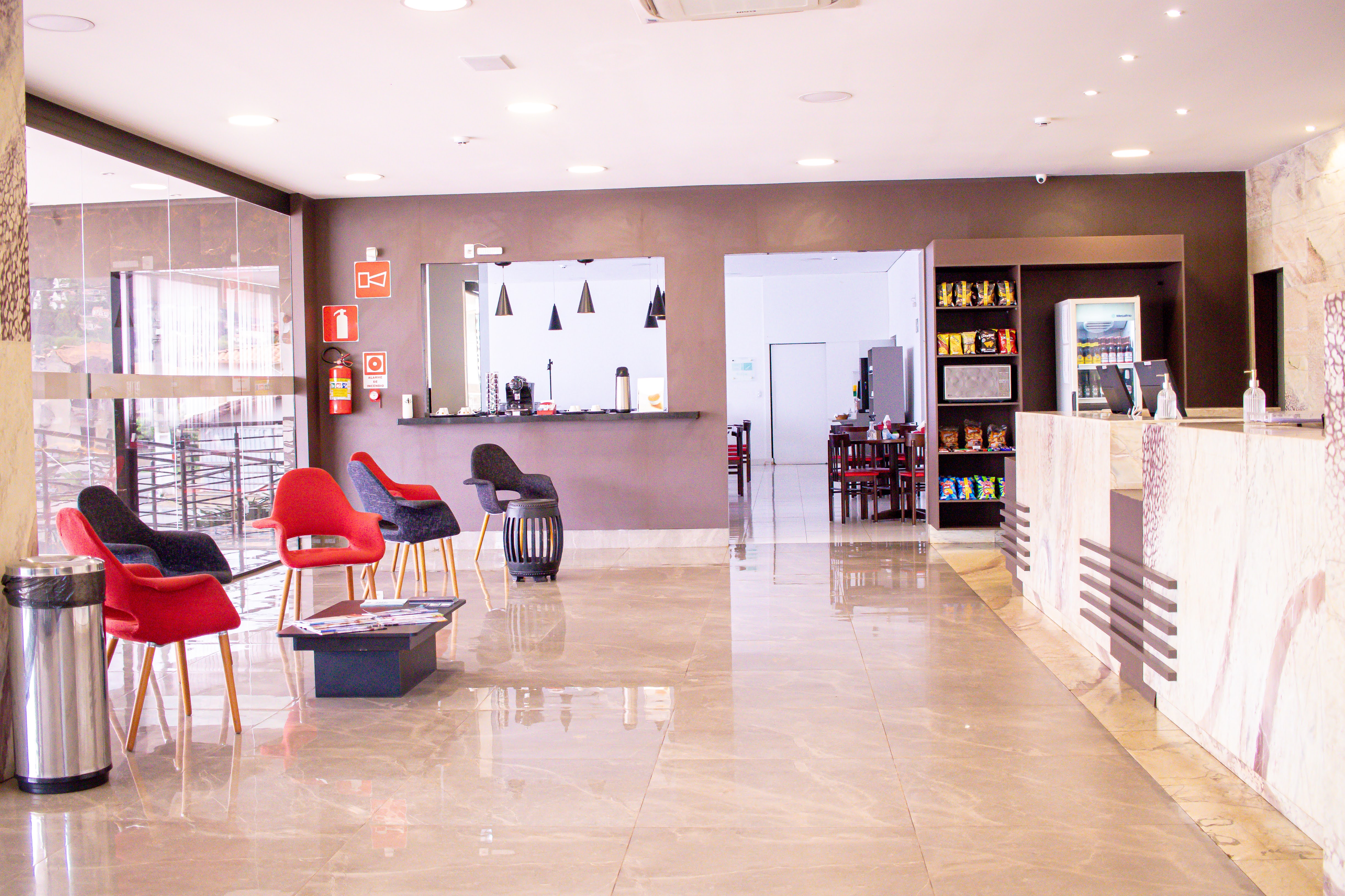 Somos o único hotel da cidade, que disponibiliza recepção com atendimento 24h, conveniência de alimentos e bebidas, amplo estacionamento com vagas rotativas e sobre disponibilidade, academia, wi-fi e café da manhã incluso na diária.